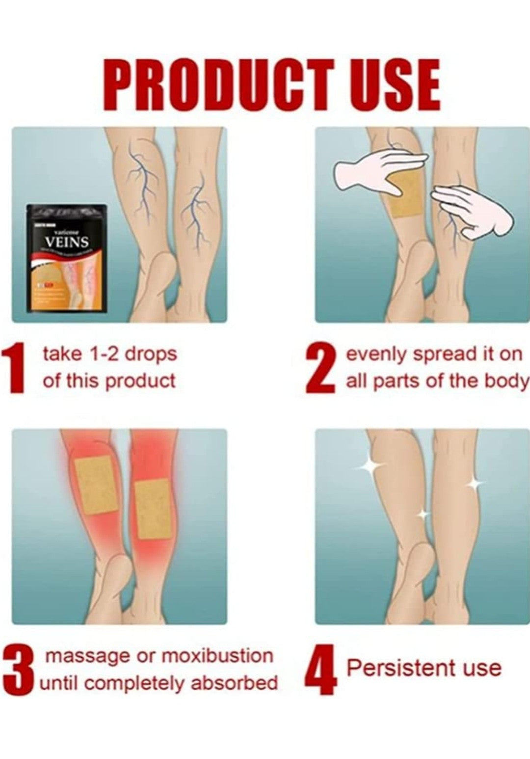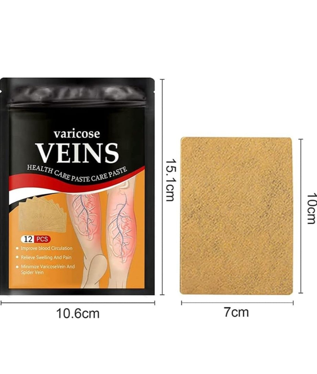 Ingredientes naturales: nuestros parches para venas varicosas contienen extractos de hierbas naturales que no irritan la piel ni dañan la piel.Parche para venas varicosas: nuestros parches pueden ayudar a superar el dolor de las venas inflamadas, aliviar el dolor, mejorar la circulación sanguínea y aliviarAdecuado para todas las personas: este parche para venas varicosas es adecuado para personas que están sentadas o de pie en la oficina durante mucho tiempo, usan tacones altos durante mucho tiempo, obesidad posparto, flujo sanguíneo deficiente en laspersonas con varicesmultifuncional: reducen la hinchazón, la fatiga y la tensión en las piernas, mejoran el sueño, la circulación sanguínea, etc.El paquete incluye: 12 piezas, si tiene alguna pregunta sobre nuestros productos, no dude en contactarnos. Parche de tratamiento de venas Características varicosas: 1.Alivia las venas varicosas leves, moderadas y graves 2.Eliminar obstrucciones en las venas varicosas 3. Promueve el flujo sanguíneo y la circulación suave y saludable4. 100% Todos los ingredientes naturales y orgánicos5. Alivio de la rigidez de piernas y pies6. Reactiva la movilidad y flexibilidad de las piernas7.Resuelve las venas reventadas en las piernas 8. Color claro de venas oscuras debajo de la piel9. Relaje la tensión en los músculos de las piernas Cómo usar:1. Limpie y seque la zona afectada.2. Abra el paquete y saque el parche para las varices.3. Doble el parche y retire la película para dejar al descubierto el lado adhesivo.4. Especificaciones: Embalaje del